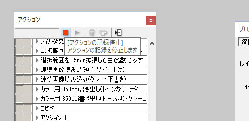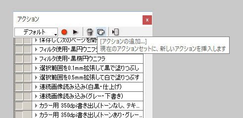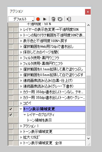 そしてアクションで先ほどつくった、トーン領域チェックをするアクションを選択して